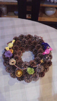 昨日も、ひたすらに、マツカサを組み立てるレッスンでした(笑)