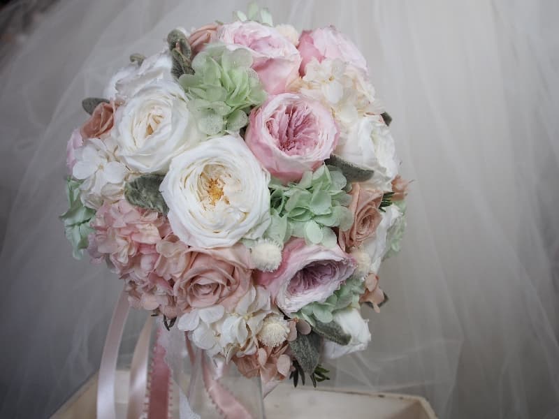 eclat☆エクラのブライダルレッスンで使用する花材は、プリザーブドフラワーとなります。(アーティフィシャルも対応可)